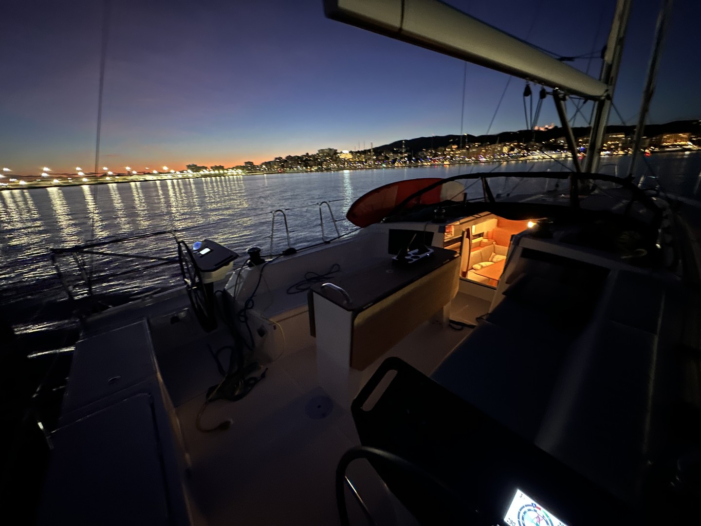 Enjoy an unforgettable experience sailing at sunset across the spectacular Bay of Palma aboard an elegant Dufour 41. As the sun slowly sets over the Mediterranean Sea, you can relax on deck and admire one of the most magical moments of the day, surrounded by the sea and tranquility.