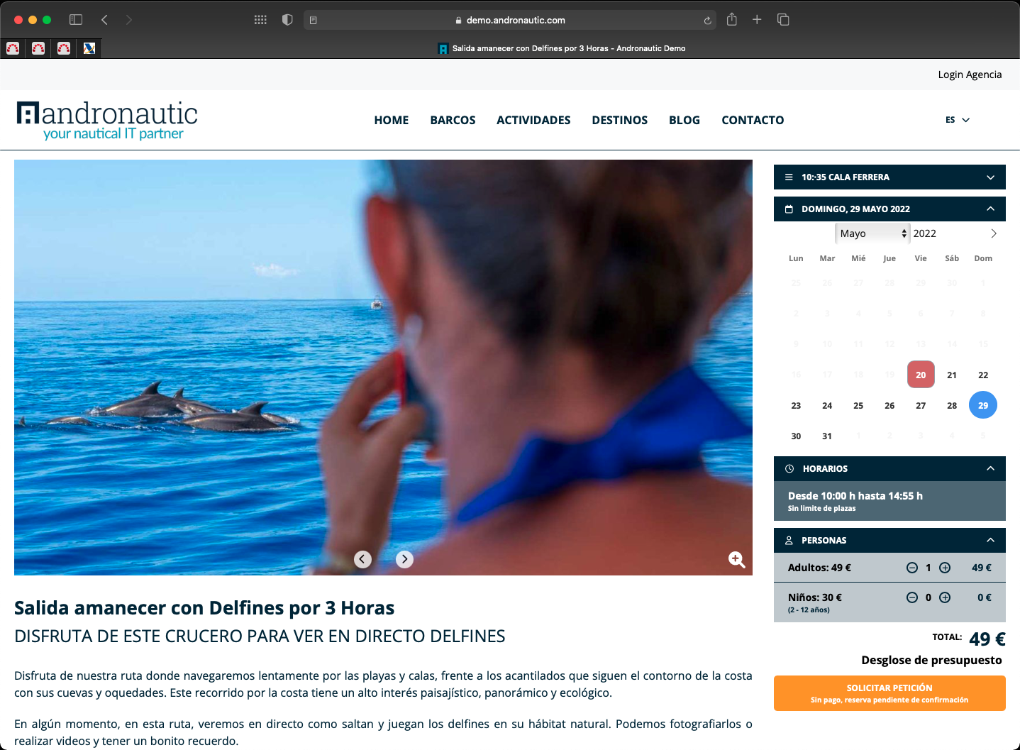 En este caso el proceso de reserva está a la derecha del contenido del producto.